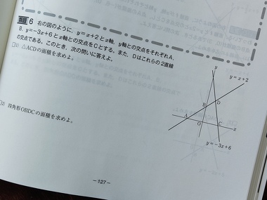 数学は今「2元1次方程式のグラフ」「2直線の交点」そして「x軸, y軸との交点」についてガンガン問題演習を実施中です。