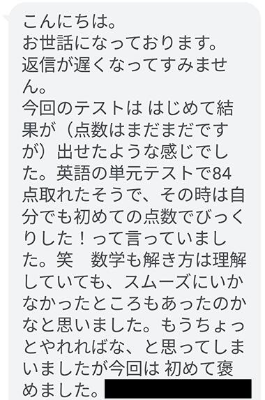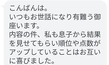 保護者さまの中には、下記のような嬉しいご連絡をくださった方もおりました。本当にありがとうございます!励みになります!!