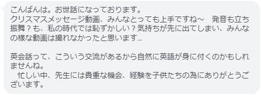 すると、早速動画を見てくださった保護者さまからこんな嬉しいコメントをいただきました。(*^_^*)