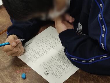 今は自宅では「単語」「熟語」の反復学習、教室では「過去問演習」「英作文」の添削を実施中です。