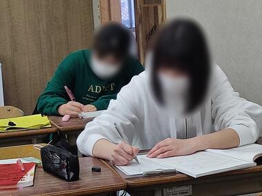 教室で学習を残って進めている生徒さんたちは「気持ちが乗ってきた今の流れを止めないため」と判断し、そのまま教室で学習を進めています。