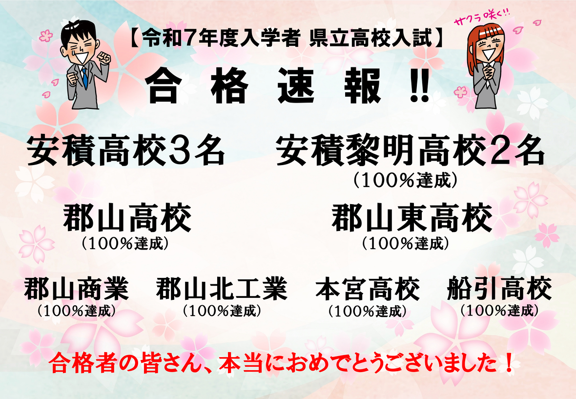 まずは、志望校合格を果たした皆さん、本当におめでとうございました。