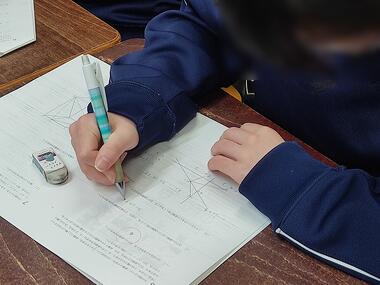 今日は中学2年生との授業日。ここ1か月ほどは新教研テストの過去問を使いながら、もっぱら「実戦的な問題演習」を続けています。