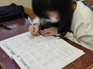 そのため、生徒さん方には「ゆっくりでもいいから丁寧な字で、綺麗に並べて書くこと」「小数点の位置が正しい位置に打てているか確認すること」という2点をしつこく言い続けています。