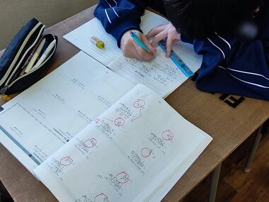 自主学習ノートに私と一緒に学習して「間違えた問題」をピックアップしてそれを丁寧に解き直ししているんですよね。