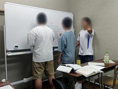 今日、数学Aのテストが残っている面々は、夜遅くまで黙々と学習に取り組んでいました。