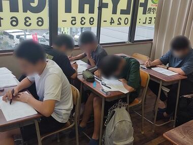 夏期講習会で使用した教材を復習している人。新教研テストの過去問を懸命に解いている人…などなど。