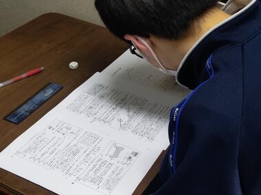 水曜日の個別指導は、受験生の方が多く、現在は新教研テストや県立入試の過去問などを使って、実戦的な問題に数多く取り組んでいただいています。