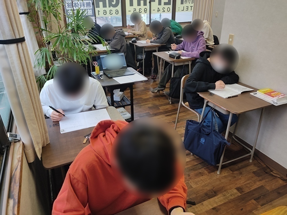 今日、私が担当した普通科進学校希望の生徒さんたちは県立入試の問題に取り組んでいただきましたが、みんな真剣な面持ちで休憩することも忘れて夢中に問題に取り組んでくれていました。