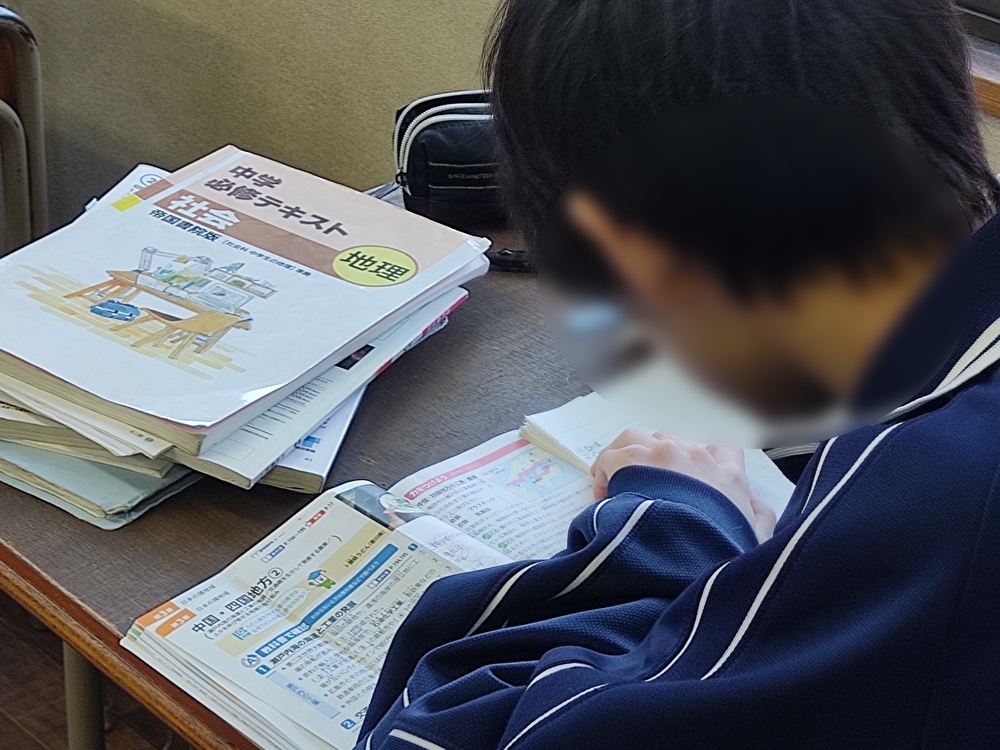 週末、教室に足を運び黙々と学校ワークの復習に励んでいる生徒さんたちの姿が見られました。