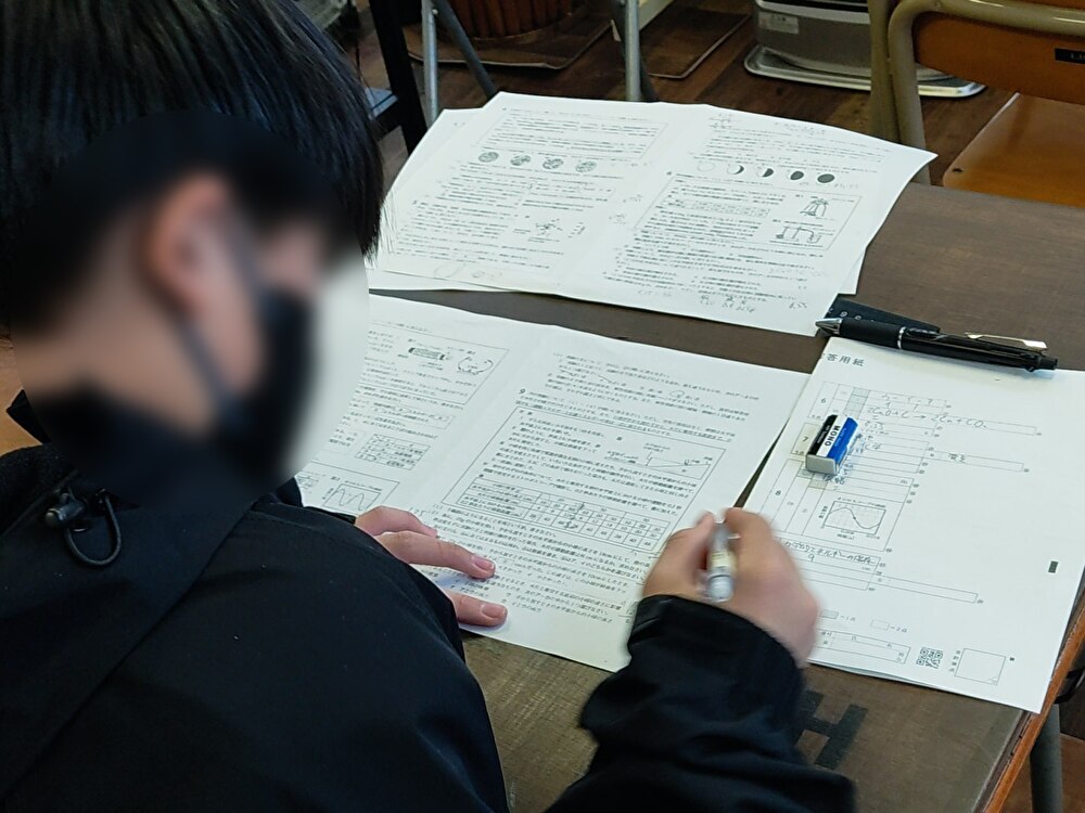 ご自身で県立入試の過去問を購入している方も多く、直近5年分は大部分の方がすでに学習しているため、塾の方ではそれよりも古いものをご準備して演習してもらっています。