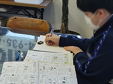 冬休み中の宿題や講習会のテキストを復習したり、一昨日の新教研テストを解き直ししたり。