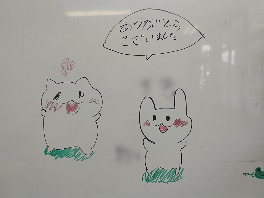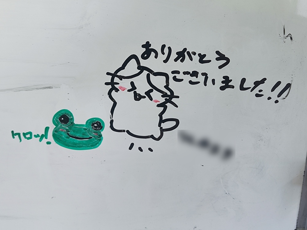 待っている間、暇にならないようにボードにお絵描きしてもいいよとお伝えしていたんですが、まさかこんな素敵なメッセージを残してくださるとは…。