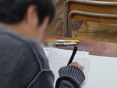 昨晩。授業時間よりもだいぶ早く教室入りし、テスト勉強に励んでいたこちらの生徒さん。