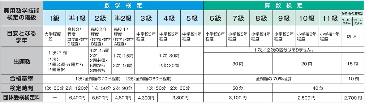 ※ お申し込み級の目安の確認、お申し込み後の力試しにご活用ください。
