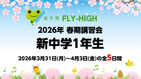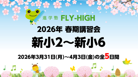 進学塾FLY-HIGHの春期講習会は 「新学年の先取り学習」を実施します! 受験勉強の方法から各教科の具体的な解法まで、受験指導を31年間行ってきた塾長をはじめ、 ベテラン講師陣が懇切丁寧に指導をさせてい...
